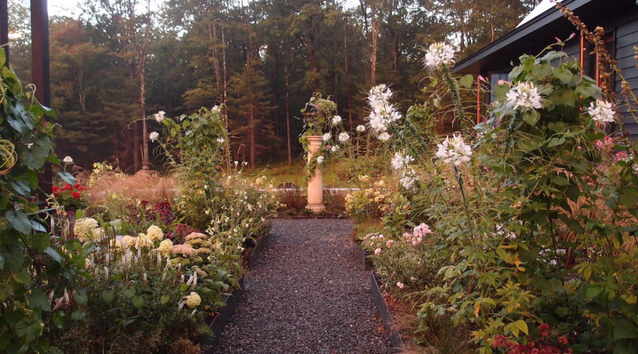 The Terrace at twilight. Pink Cleome & Chartreuse Nicotiana are